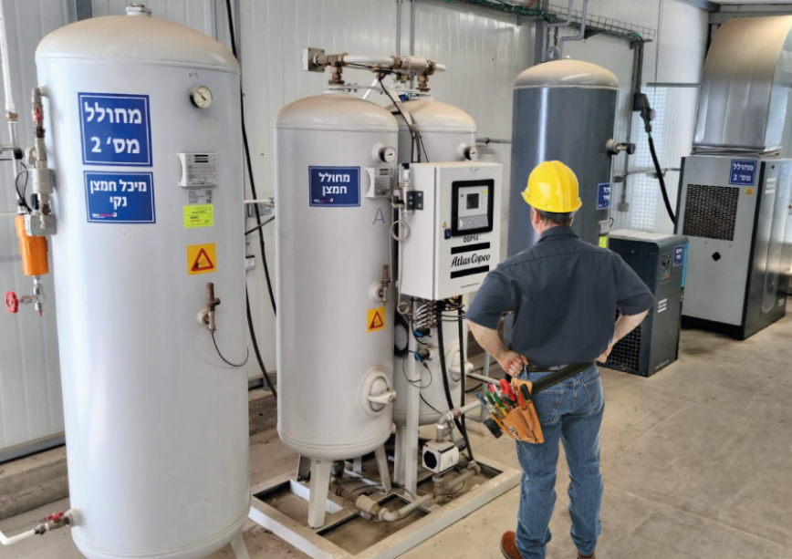 הצוות המקצועי של חברתנו תכנן והתקין מערכת כפולה (ראשוני ושניוני) לייצור חמצן מסדרת OXYPLANT של היצרן ATLAS COPCO.